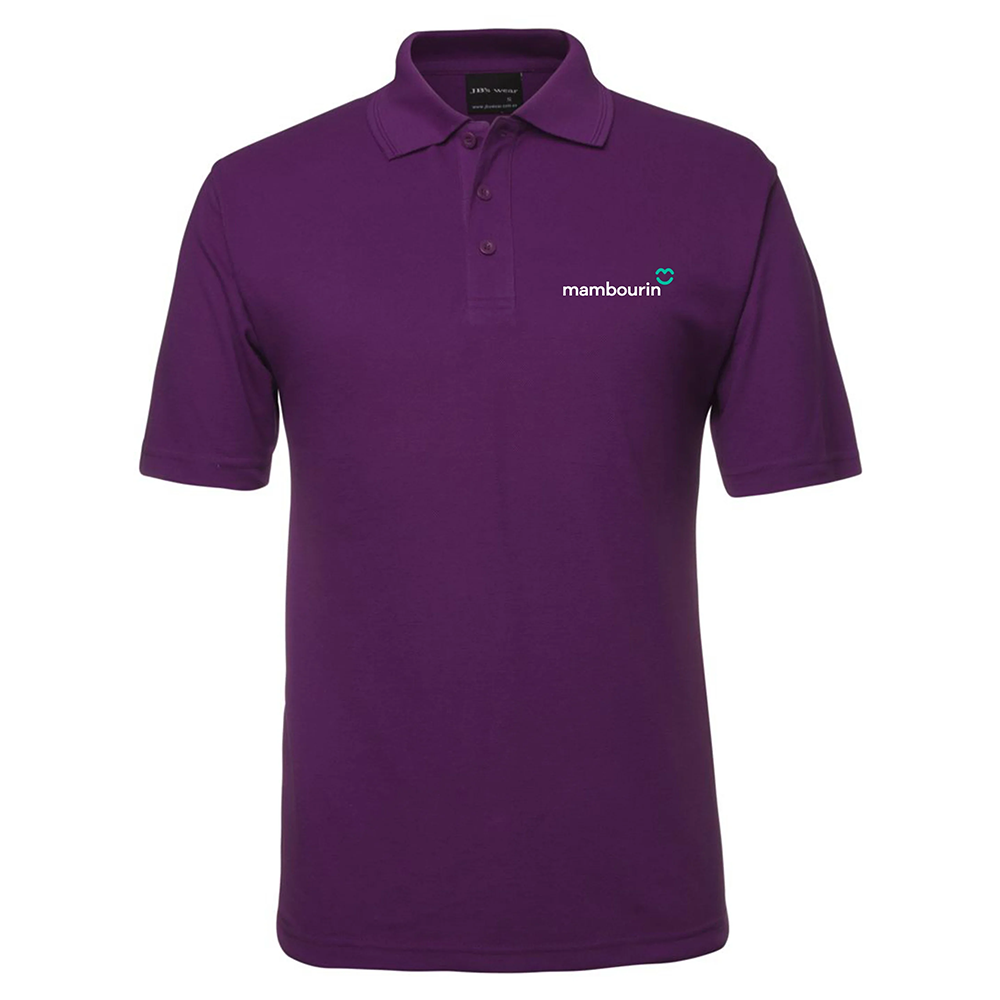 The Men’s Action Polo Purple, made from 210gsm 65% polyester and 35% cotton, features a knitted collar, 3-button placket, and reinforced side splits. With a “mambourin” logo, this easy-care mulberry polo in XS~5XL offers durable comfort and a classic fit.